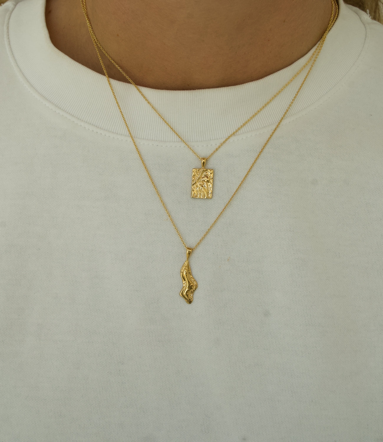 Oplev rå skønhed og elegance med Raw Halskæden - et lagdelt mesterværk i 18 karat forgyldt sterlingsølv, perfekt til tidløs stil og alsidig bæring.
