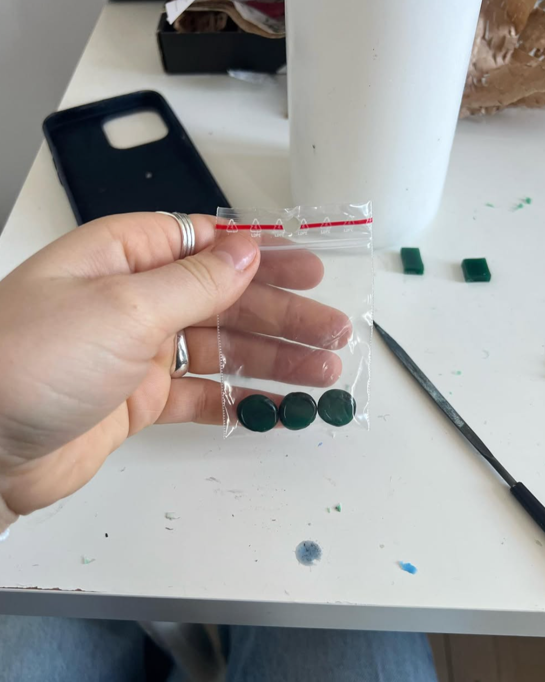 Når du bestiller en ring med aftryk hos mig, guider jeg dig hele vejen. Du får tilsendt en lille pakke med voks, som du laver aftrykket i – eller du kan komme forbi mig, hvis du ønsker hjælp til det. Jeg sørger for, at det bliver nemt og trygt.